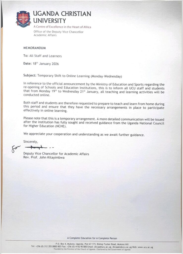 Students at the Uganda Christian University (UCU) will continue with online learning